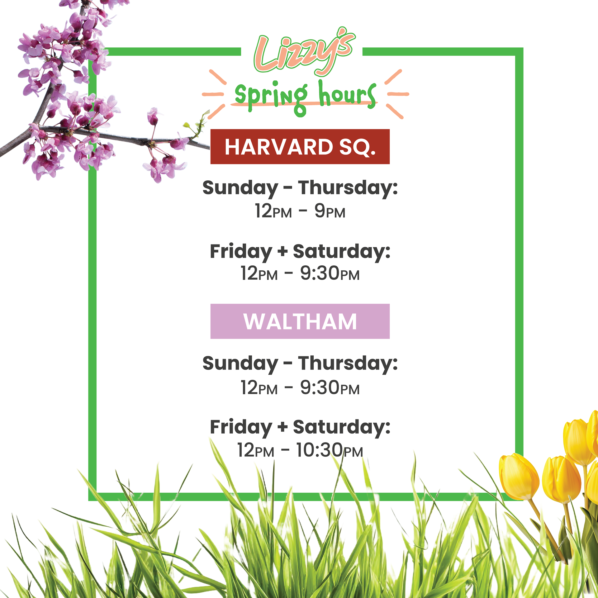 Keeping everyone updated on our store hours and new flavors.