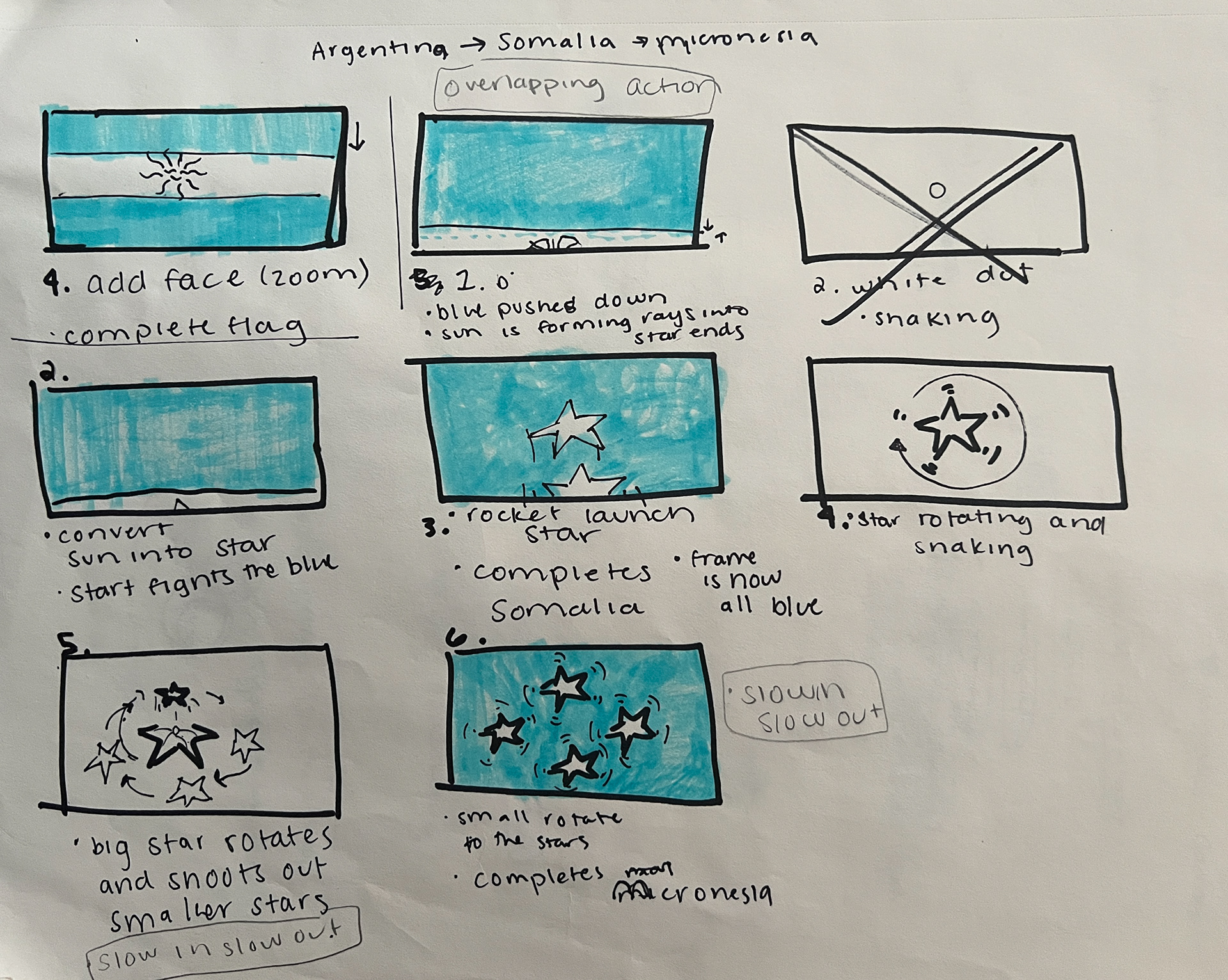 A quick motion graphic through ocean-blue colored flags.